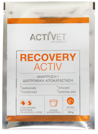 Το Activet® Recoveryactiv είναι ένα προηγμένο συμπλήρωμα διατροφής για σκύλους και γάτες, ειδικά σχεδιασμένο για την ταχεία διατροφική αποκατάσταση του οργανισμού σε περιόδους ανάρρωσης μετά από ασθένεια, τραυματισμό ή χειρουργική επέμβαση.