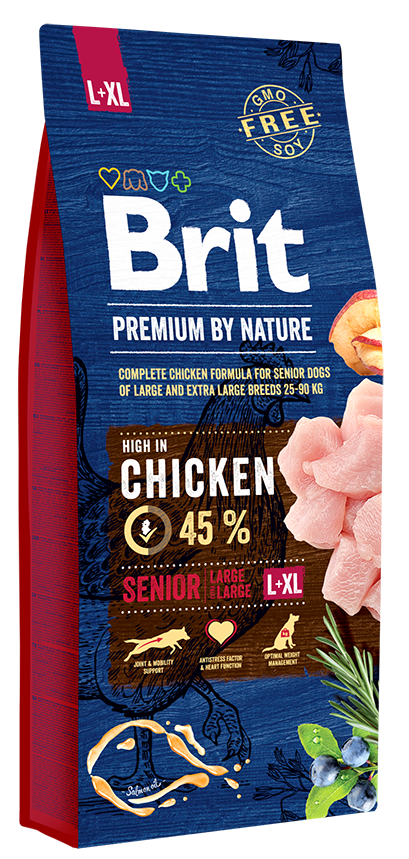 Η Brit Premium By Nature Senior Large & Extra Large είναι μια πλήρης και ισορροπημένη ξηρά τροφή, ειδικά σχεδιασμένη για ηλικιωμένους σκύλους (+7 ετών) μεγάλου και πολύ μεγάλου μεγέθους φυλών (25–90kg). 🐶