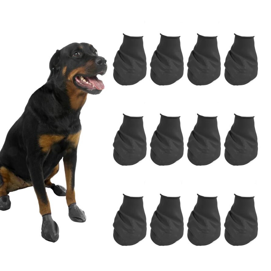 🐕 PawZ Rubber Dog Boots Large Black – 12 Τεμάχια